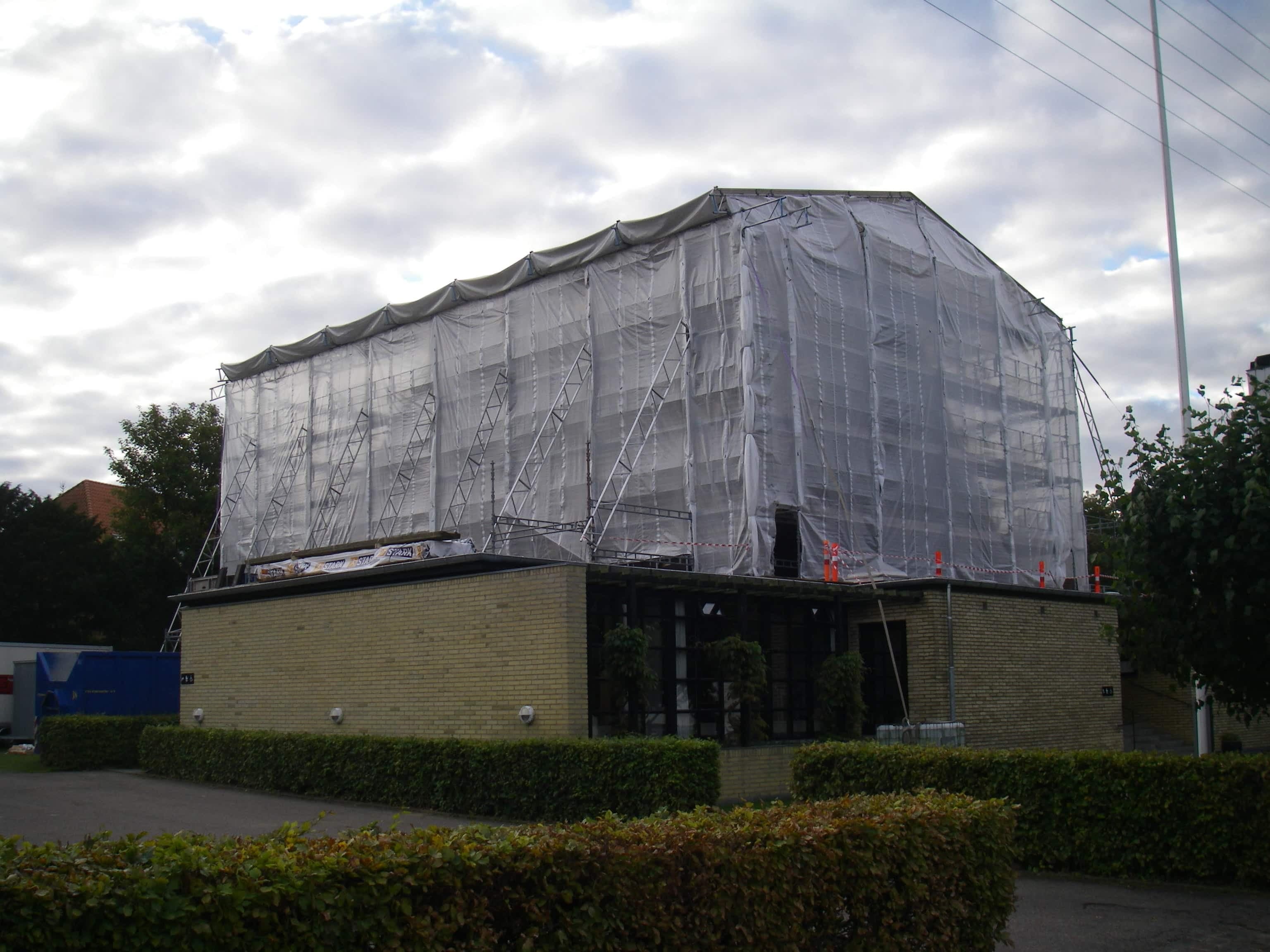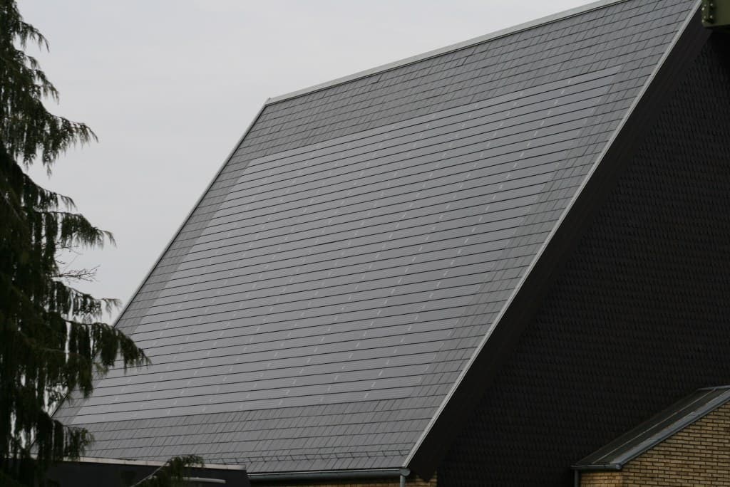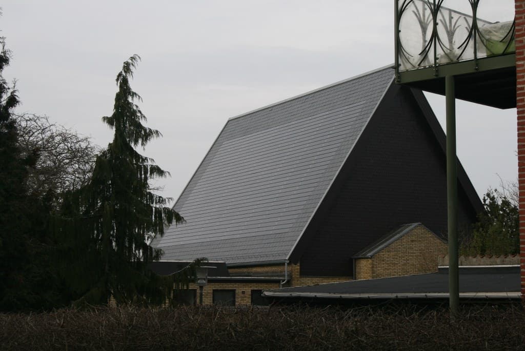 HOVEDENTREPRISE: EMDRUP KIRKE. NYT TAG MED NATURSKIFFER MED INTEGRERET SOLCELLER.