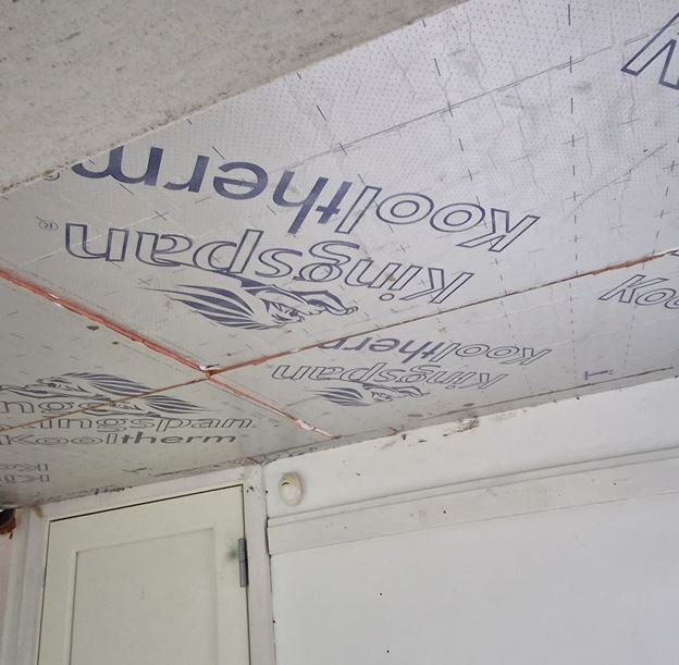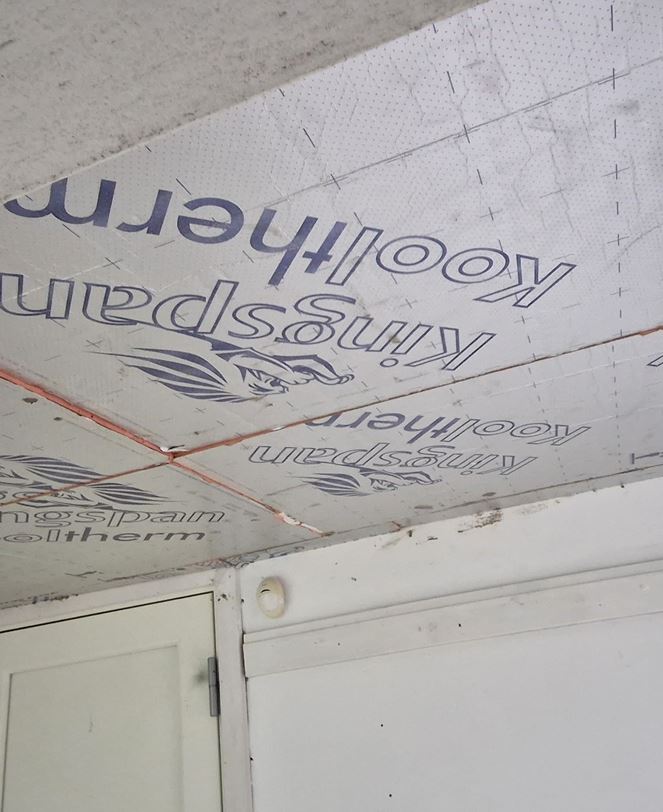 Vi har valgt at arbejde Kingspan isolering, da det er højisolerende og fylder ikke ret meget. Man lime det op på pudsloftet og kan spartle og male direkte på bagefter. Se billeder under referencer.